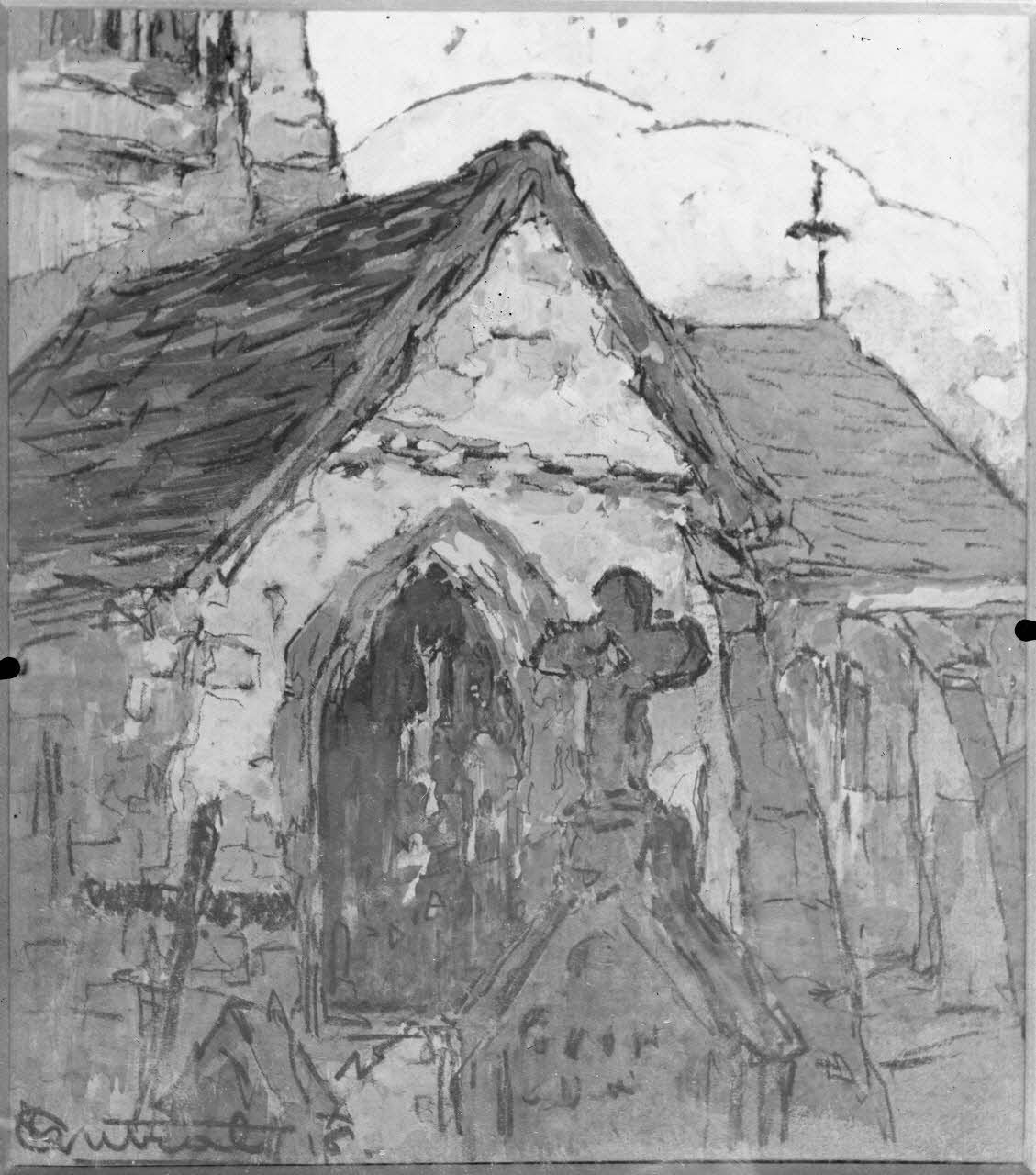 Paris, salon des Armées, Eglise de Thibié, aquarelle de Antral. [légende d’origine]