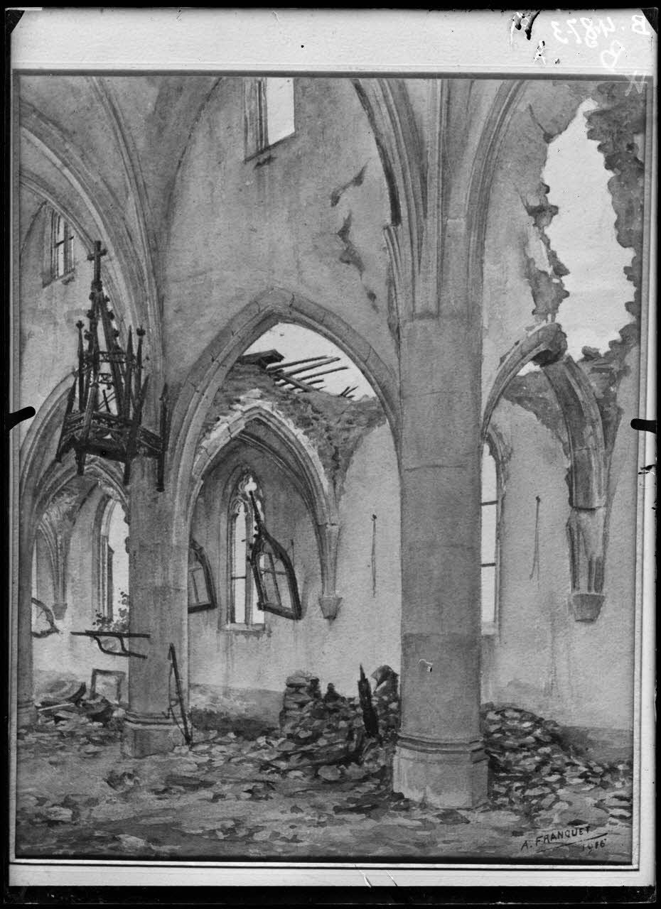 Paris, salon des Armées, Intérieur de l’église de Flirey, de Franquet. [légende d’origine]