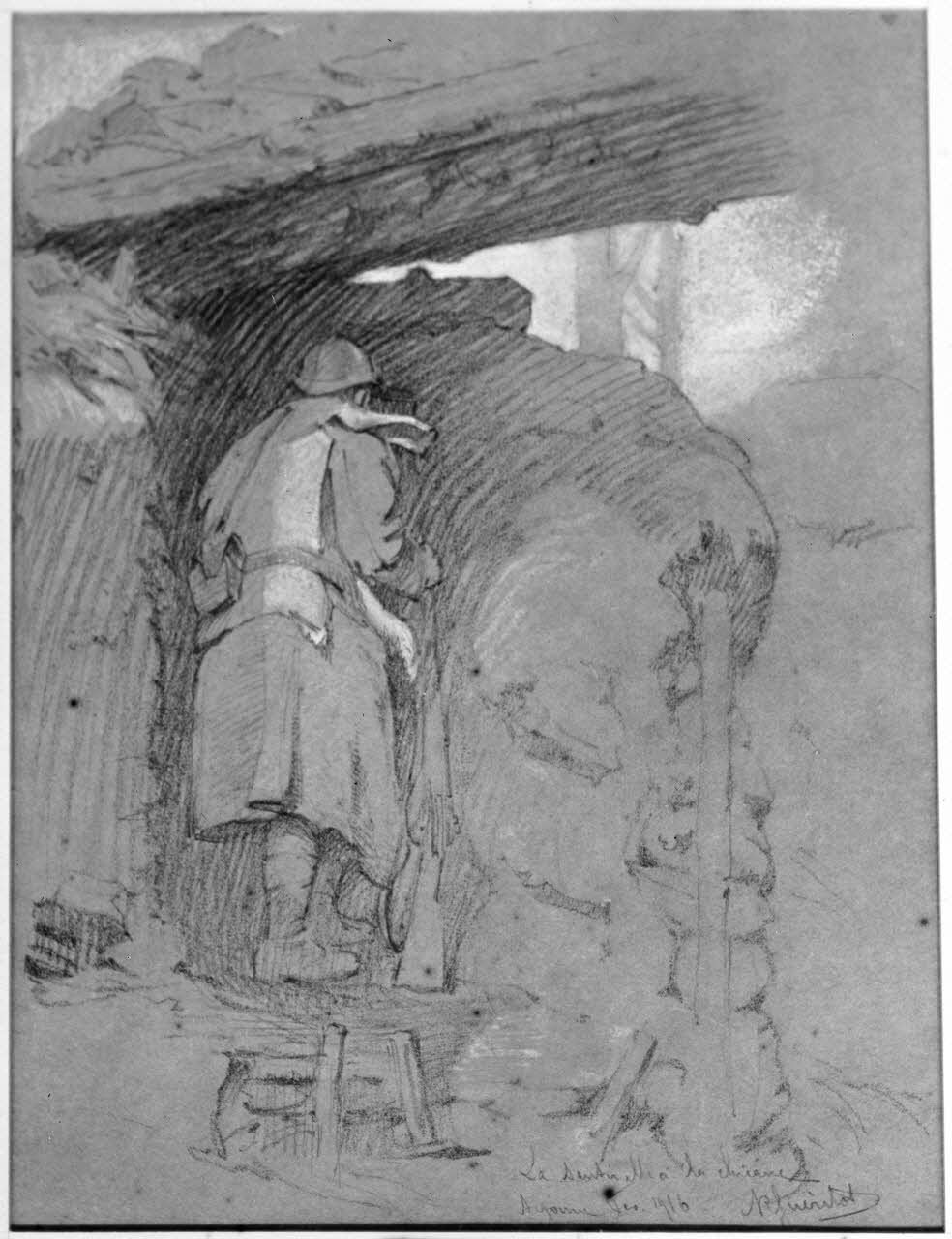 Paris, salon des Armées, croquis de poilus dans une tranchée de Verdun, par Renimel.