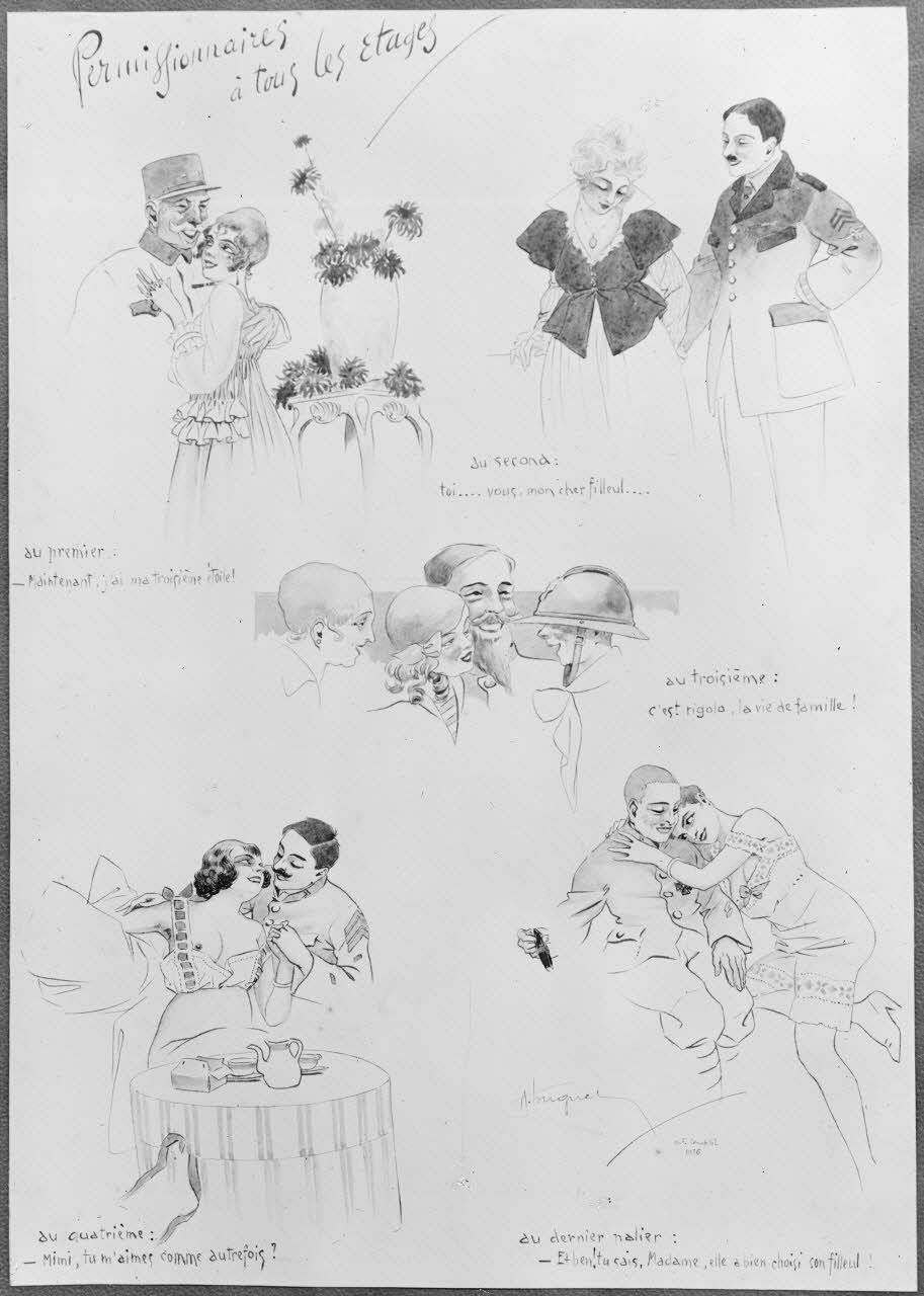 Paris, salon des Armées, Permissionnaires à tous les étages, de Huguet. [légende d’origine]