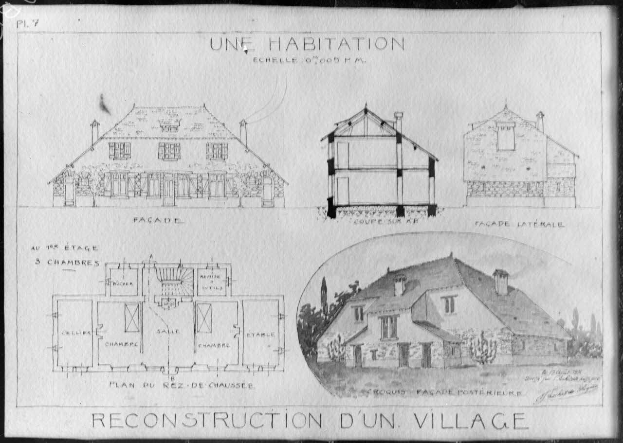 Paris, Salon des Armées, Reconstruction d’un village, projet d'une maison, par Laschett. [légende d’origine]