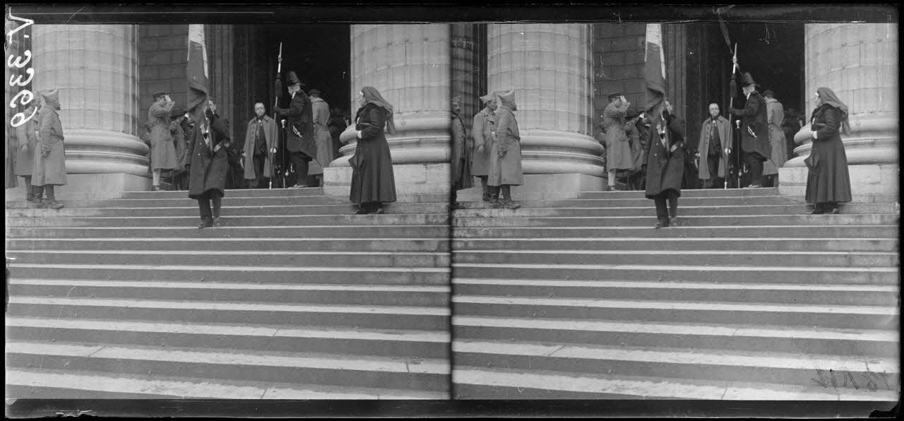 Paris, service pour les morts de la guerre à la Madeleine. Le drapeau. [légende d'origine]