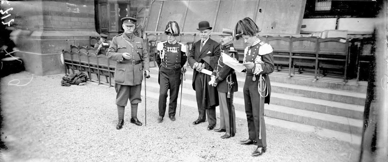 Paris. Trocadéro. Les chefs de musique des 3 gardes. M. Pares, ancien chef de la Garde républicaine et les sous-chefs de musique des gardes italienne et anglaise.