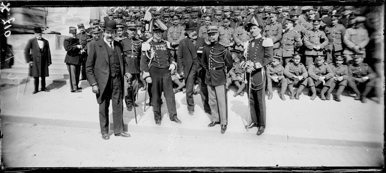 Paris. Trocadéro. Les chefs de musique des 3 gardes. M. Pares, ancien chef de la Garde républicaine et les sous-chefs de musique des gardes italienne et anglaise.
