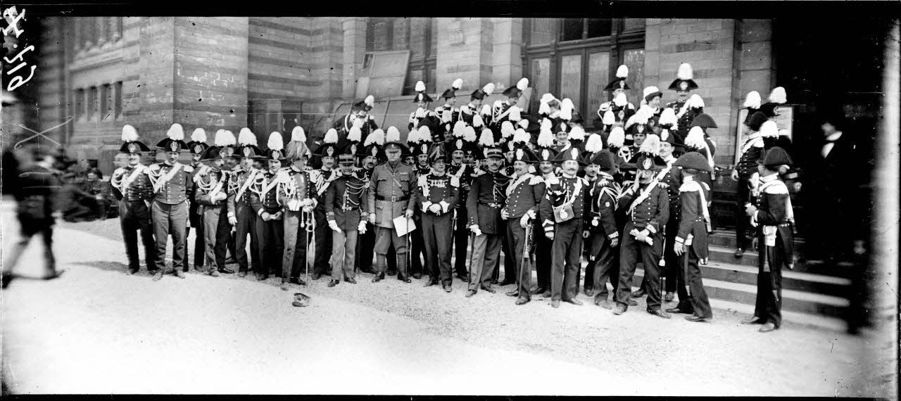 Paris. Trocadéro. Les musiciens des 3 gardes groupés devant la salle des fêtes.