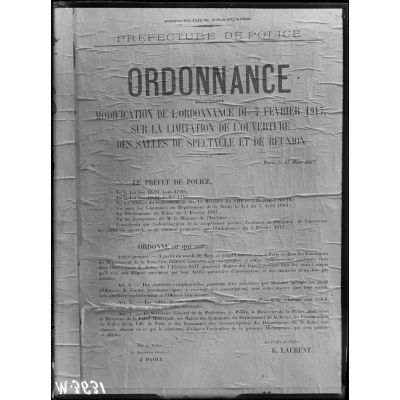 Affiche d'ordonnances sur les restrictions / Le travail des ouvrières des usines du métropolitain à Paris.