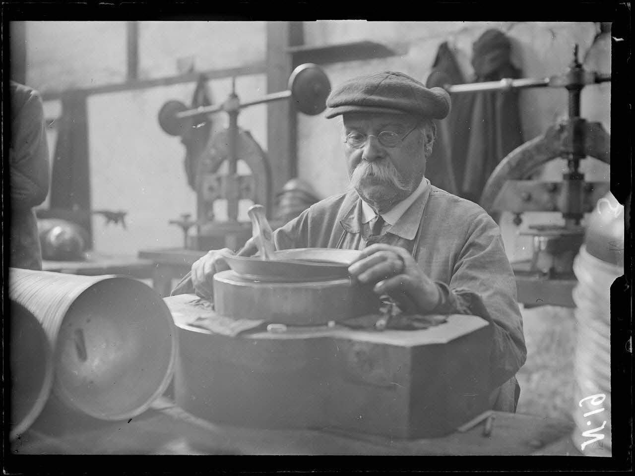 Paris, usines Simon, les étapes de la fabrication du casque Adrian.