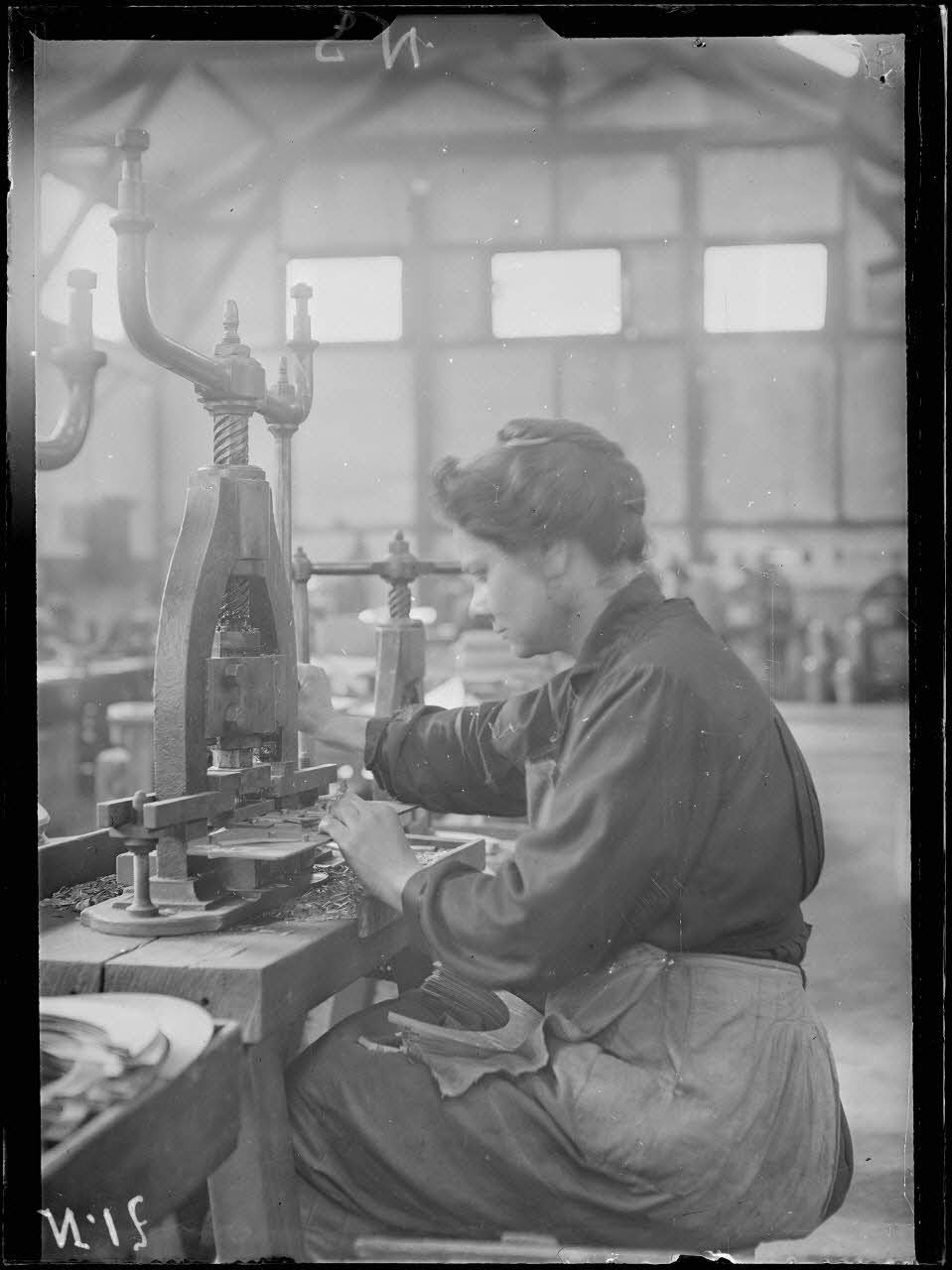 Paris, usines Simon, les étapes de la fabrication du casque Adrian.