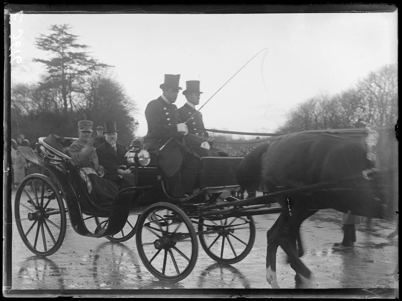 Paris. Visite de Sa Majesté le roi d'Italie. Le roi et Mr Poincaré passent en voiture.