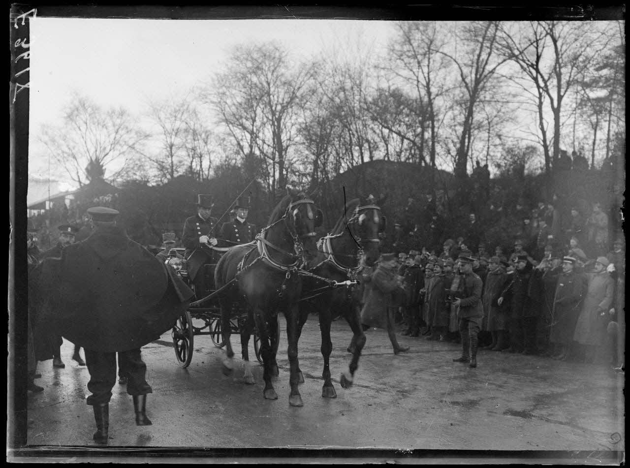 Paris. Visite de Sa Majesté le roi d'Italie. Le roi et Mr Poincaré passent en voiture. [légende d'origine]