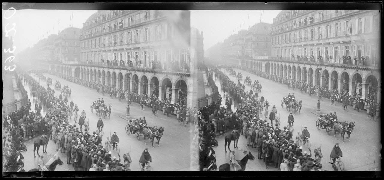Paris. Visite de SM le roi d’Italie, le cortège officiel passe rue de Rivoli. [légende d'origine]