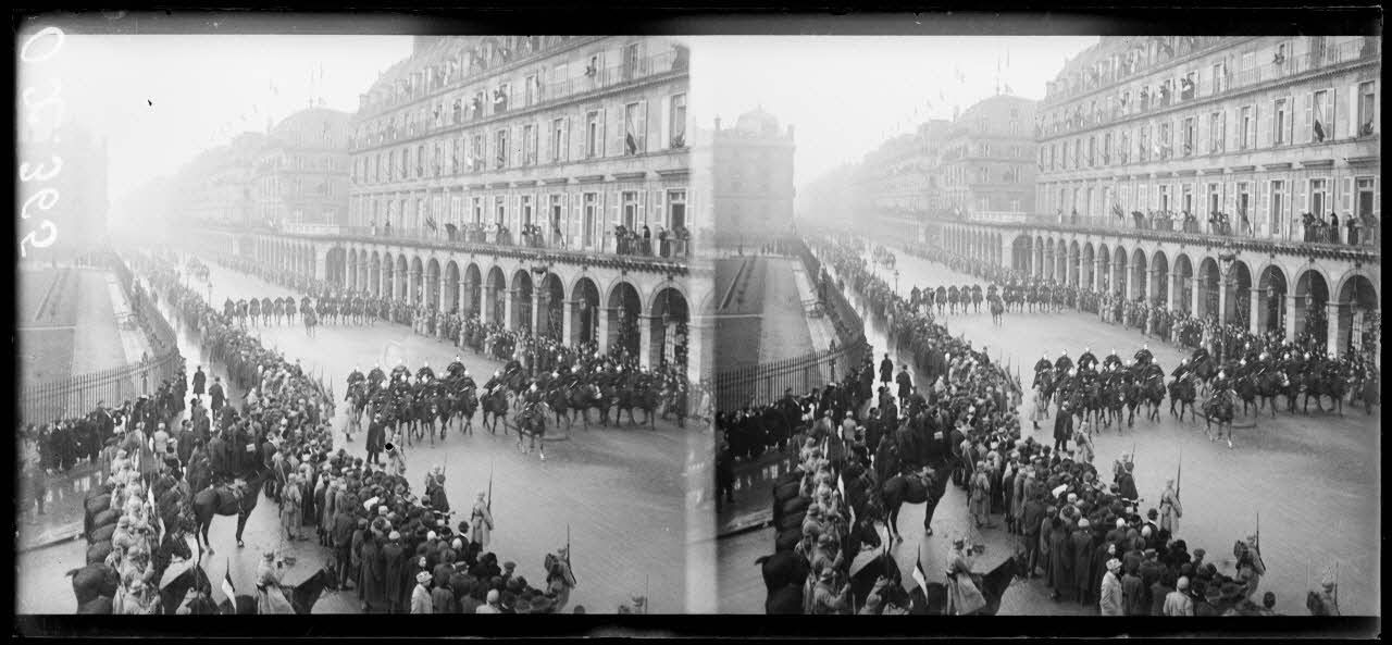 Paris, visite de SM le roi d’Italie. Le cortège passe rue de Rivoli. [légende d'origine]