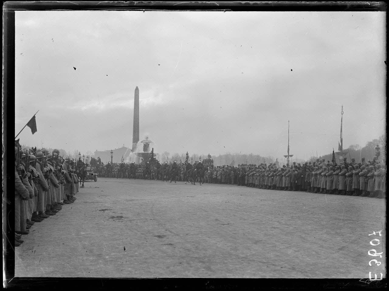 Paris. Visite du président Wilson. Le cortège officiel passe place de la Concorde.
