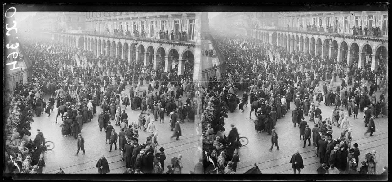 Paris, visite du roi d'Italie, la foule rue de Rivoli après le passage du cortège. [légende d'origine]
