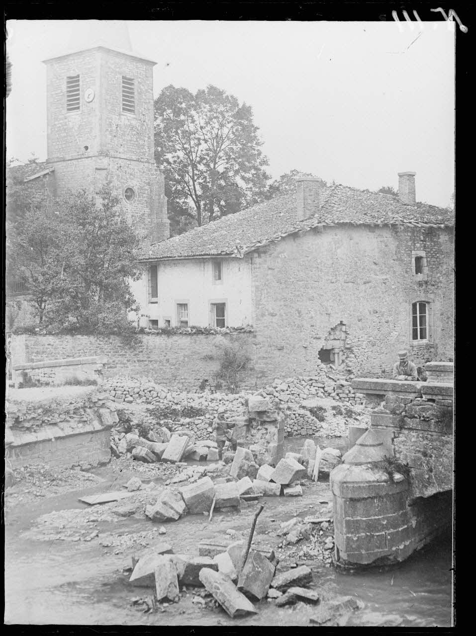 Courcelles (Meuse), le moulin qui fournit l'électricité aux postes des environs vainement bombardé par les Allemands.