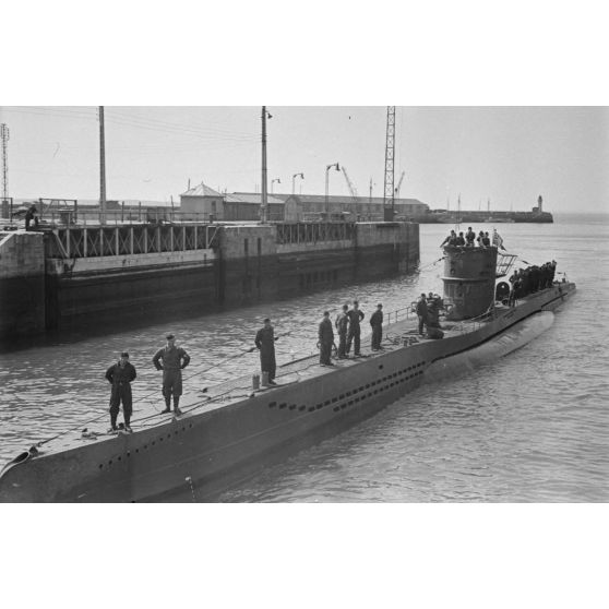 Arrivée du sous-marin U-203 dans le port de Saint-Nazaire.