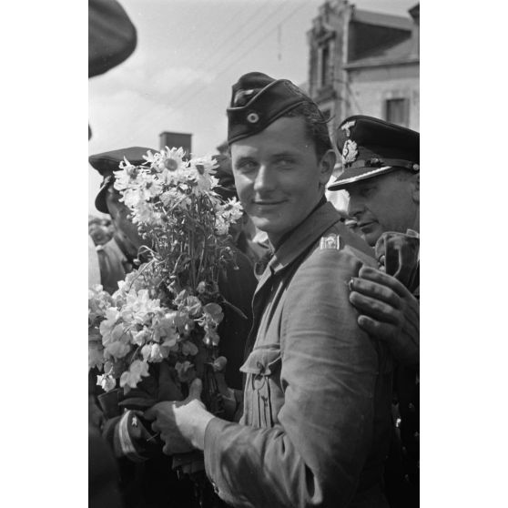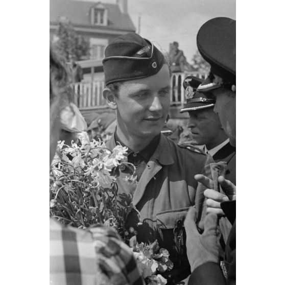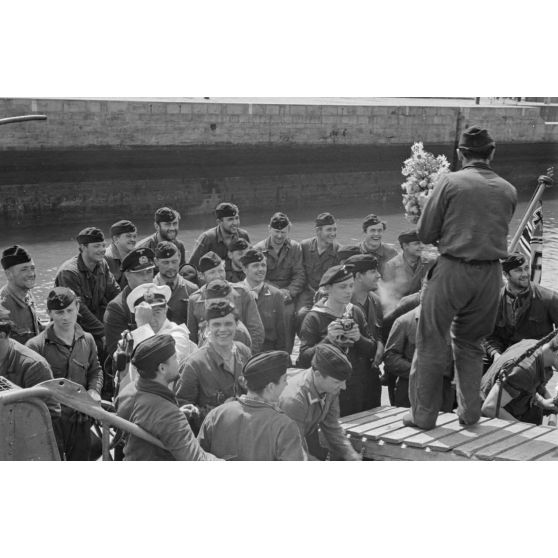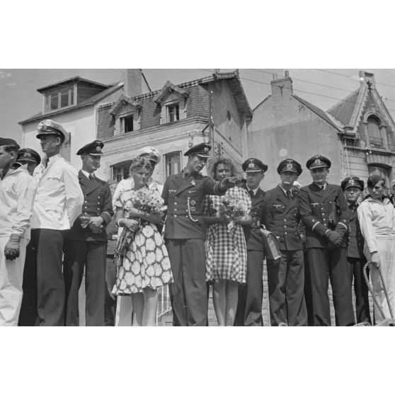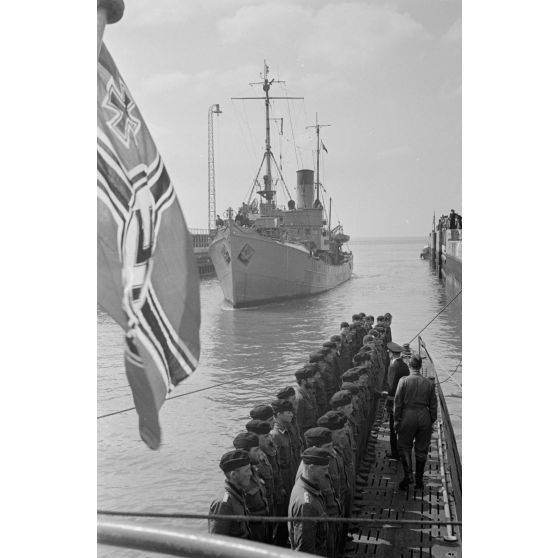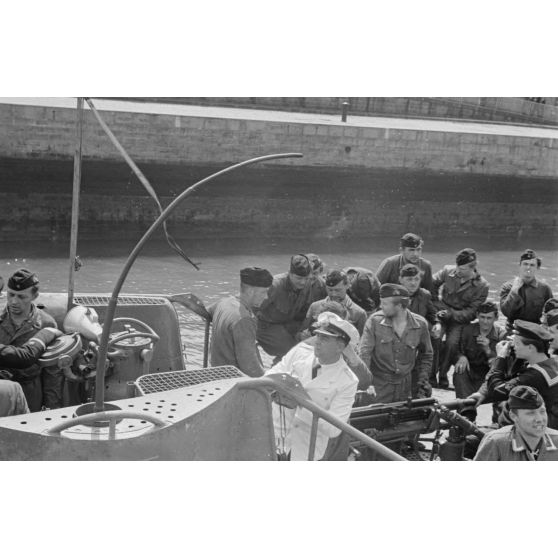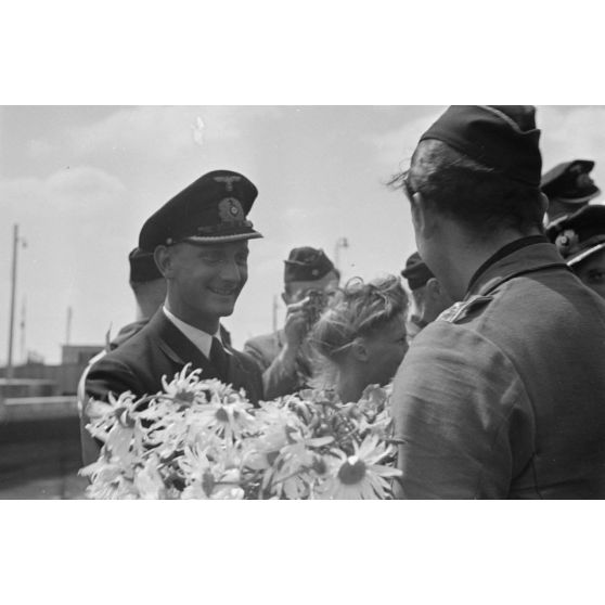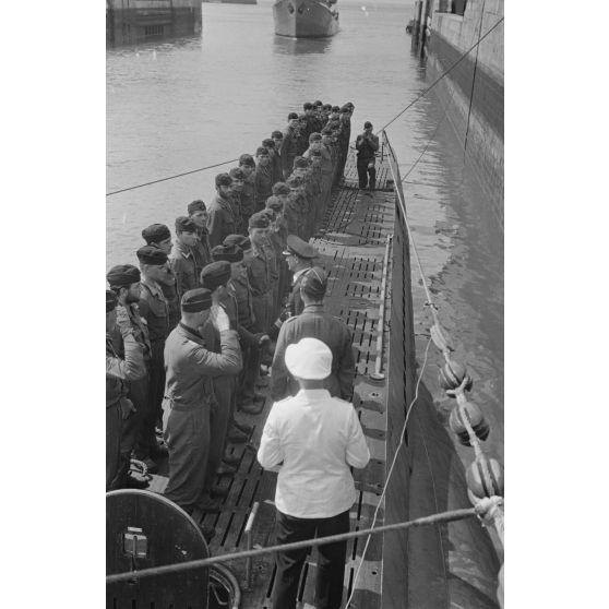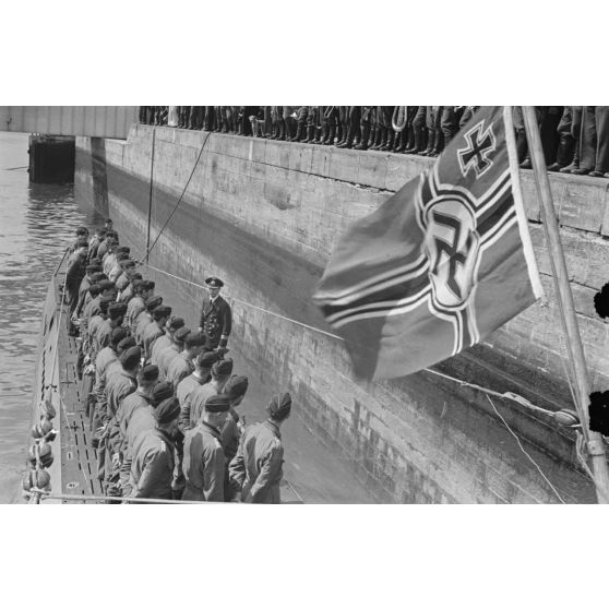 Dans le port de Saint-Nazaire, l'accueil réservé au commandant du sous-marin U-203, le Kapitänleutnant Rolf Mützelburg.