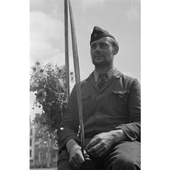 Portrait d'un sous-marinier du U-203 lors de l'arrivée du navire dans le port de Saint-Nazaire.