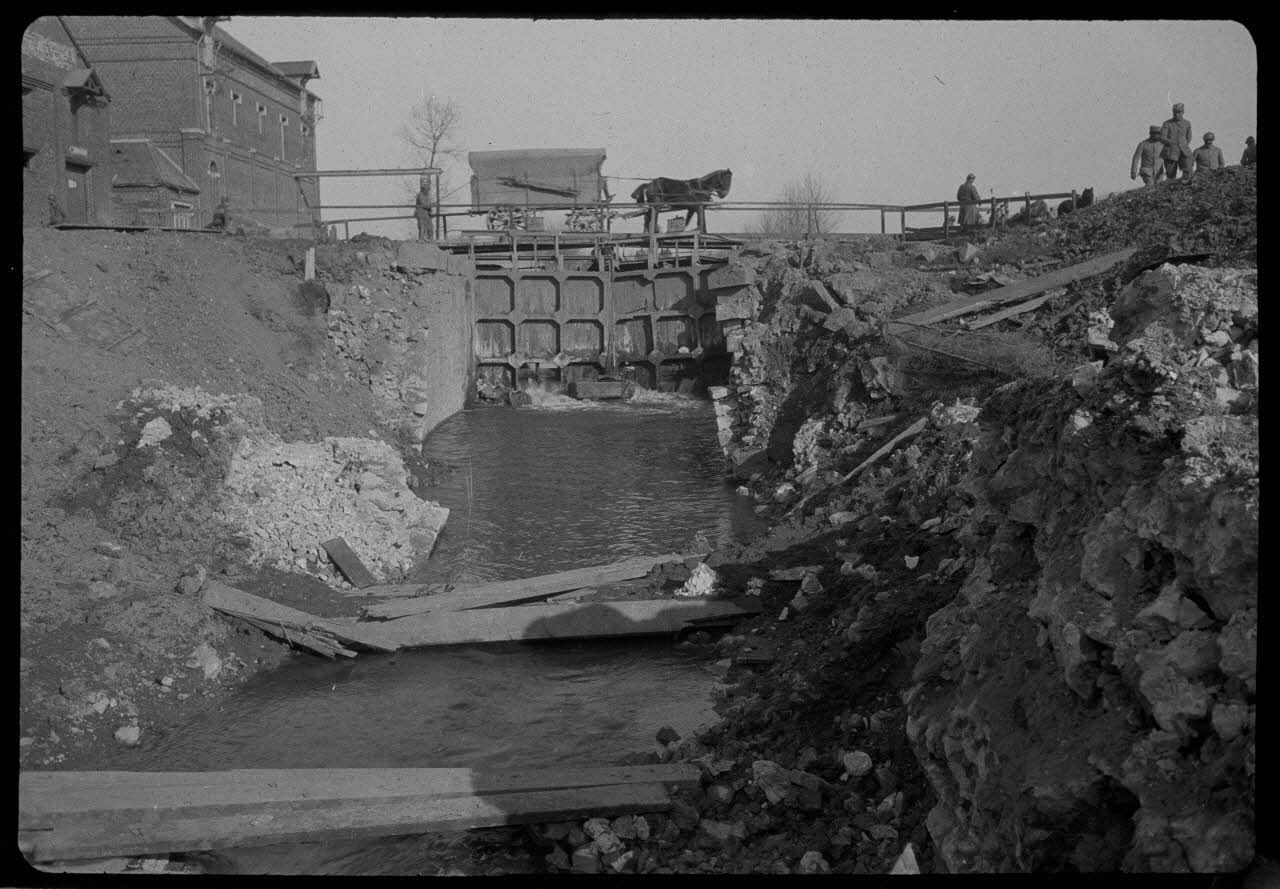 [Passage d'un chariot sur une écluse endommagée, s.d.]