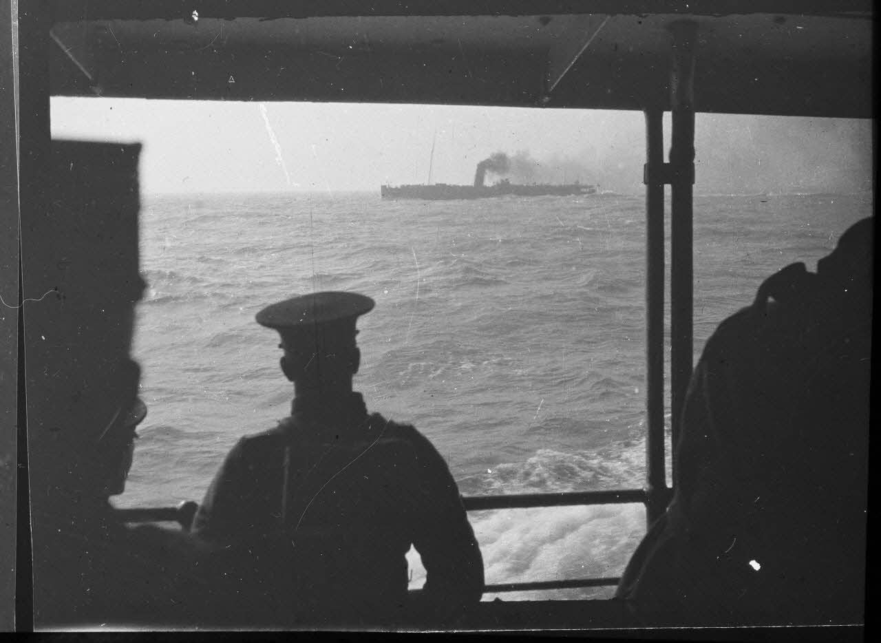 [Passage d'un paquebot à proximité d'un navire militaire anglo-saxon, s.d.]