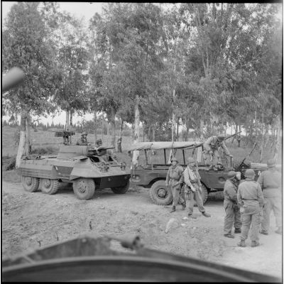 Véhicules du 12e régiment de dragons (RD) sur une route, secteur de Sonis.