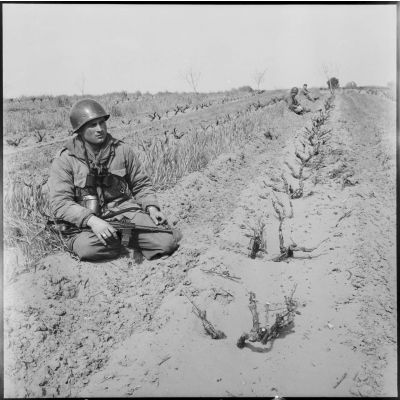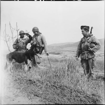 Patrouille à pied dans un douar, secteur de Sonis.