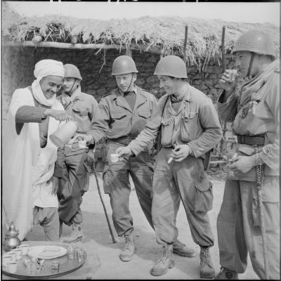 Dans un douar, le chef du village offre le café, secteur de Sonis.