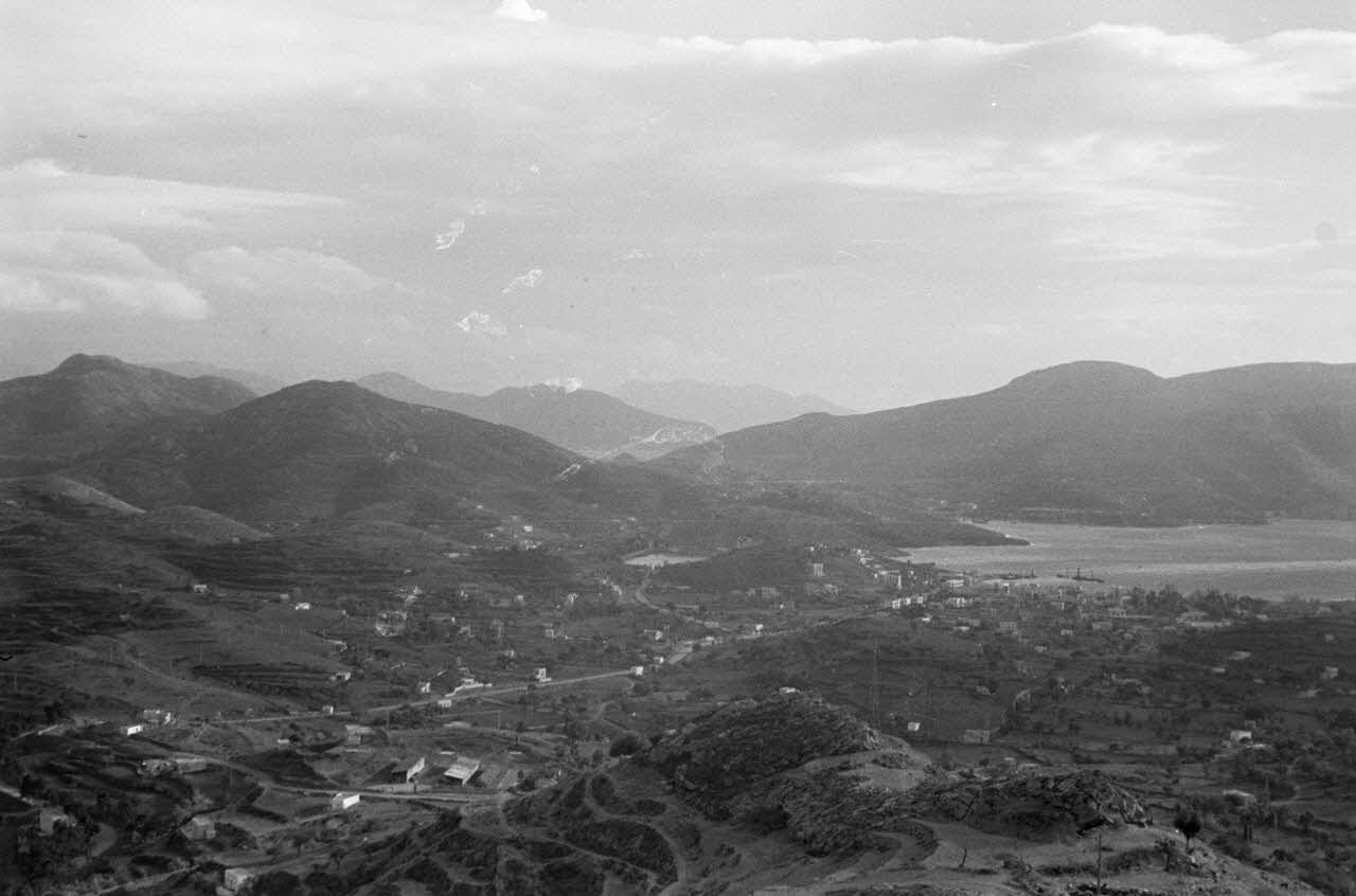Sur l'ile de Leros (Grèce), peu après l'opération Taifun, le mont Meraviglia (aujourd'hui Platanos) et son château médieval.