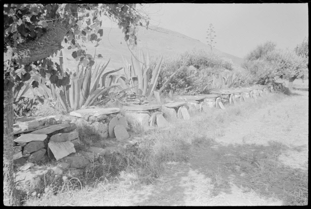 Un habitant de Naxos accompagné de son âne pose devant une agave.
