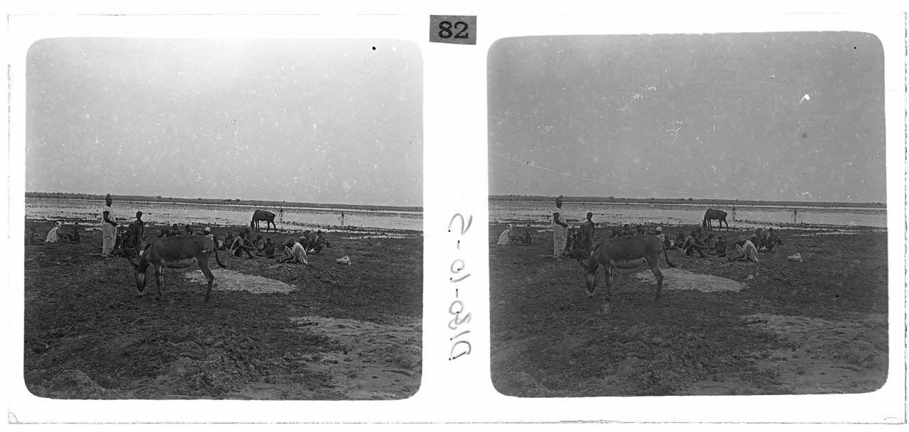 Pêche dans la mare asséchée de Dori, dans le nord-est de l'actuel Burkina-Faso.