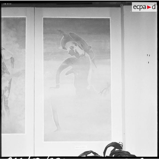 Peintures rupestres préhistoriques du Tassili, exposées à la salle Bordes à Alger, découvertes entre 1934 et 1935 par M. Henri Lhote, chargé de recherches au centre national de la recherche scientifique, attaché au Musée de l'Homme.