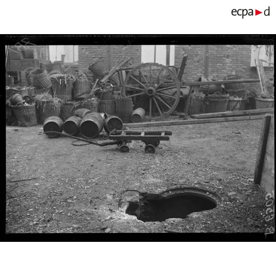 Caserne de pompiers, poste de Bitche. trou d'obus dans la cour.