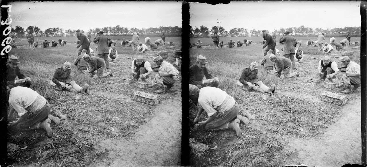 A la pépinière de Versailles : la cueillette et le chargement de légumes dans des camions pour l'expédition vers le front.