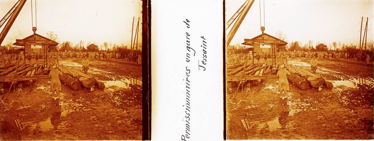 Permissionnaires en gare de Jessaint. [légende d'origine]