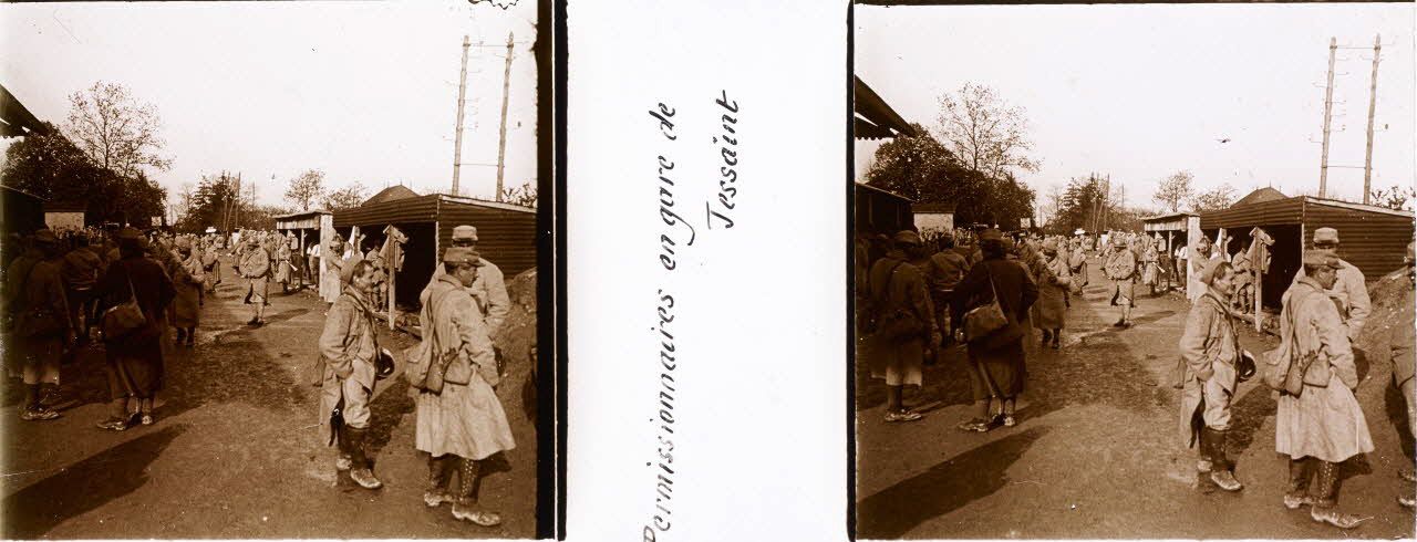 Permissionnaires en gare de Jessaint. [légende d'origine]