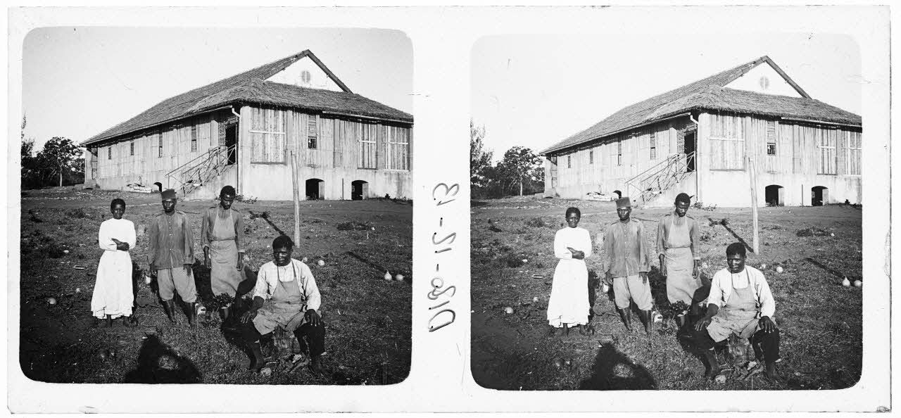 Personnel devant notre case, Razafinrafara, Bofotsara, Rabémaraina et Râla. [légende d'origine]