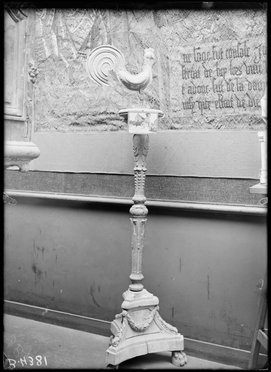Petit Palais, exposition des œuvres d’arts mutilées, coq du clocher de l’église de Cauroy (Marne), chandelier bois sculpté. [légende d’origine]