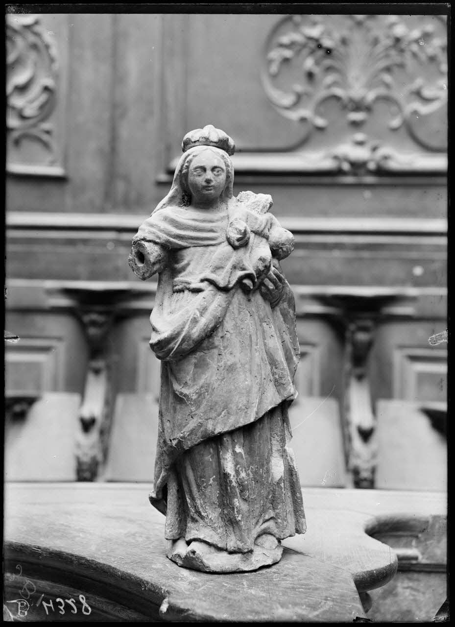 Petit Palais, exposition des œuvres d’arts mutilées, vierge de la rue du St Esprit à Verdun, 17e siècle. [légende d’origine]