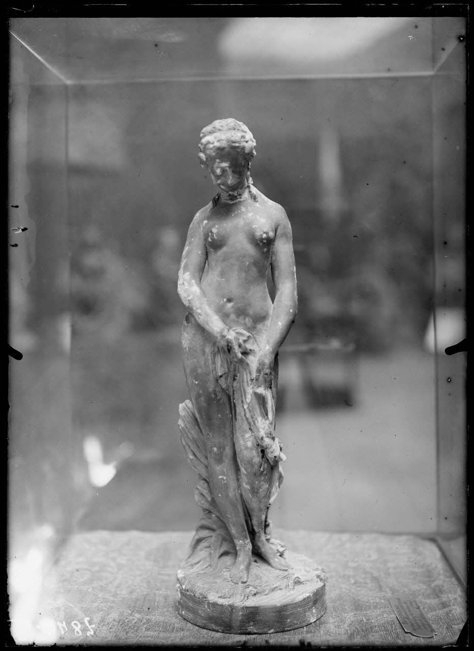 Petit Palais, les œuvres d’art mutilées, baigneuse attribuée à Falconet trouvée dans les ruines du château de Baron (Oise). [légende d’origine]