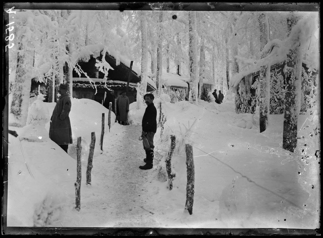 - Vues du camp installé au Tanet : camp, soldats, repos, repas, sentinelles, vie quotidienne, canons de 155 mm long, skieurs, traîneaux et chiens, convois, cuisine roulante.