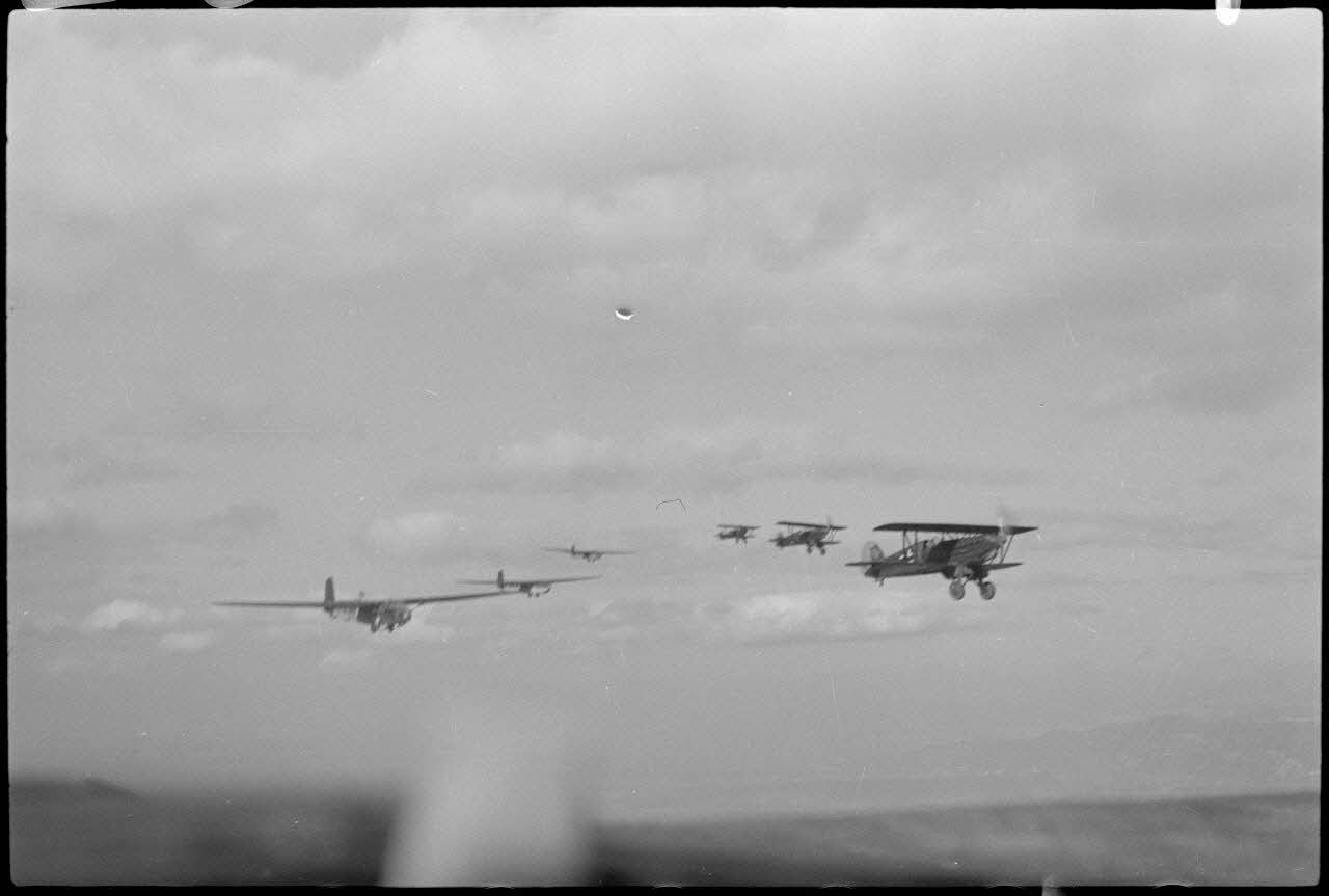 A bord d'un planeur DFS-230 du Sondergruppe du Luftlandegeschwader 1, le photographe immortalise le biplan Avia B.534 en en contre-bas l'Isère ou la Drôme.