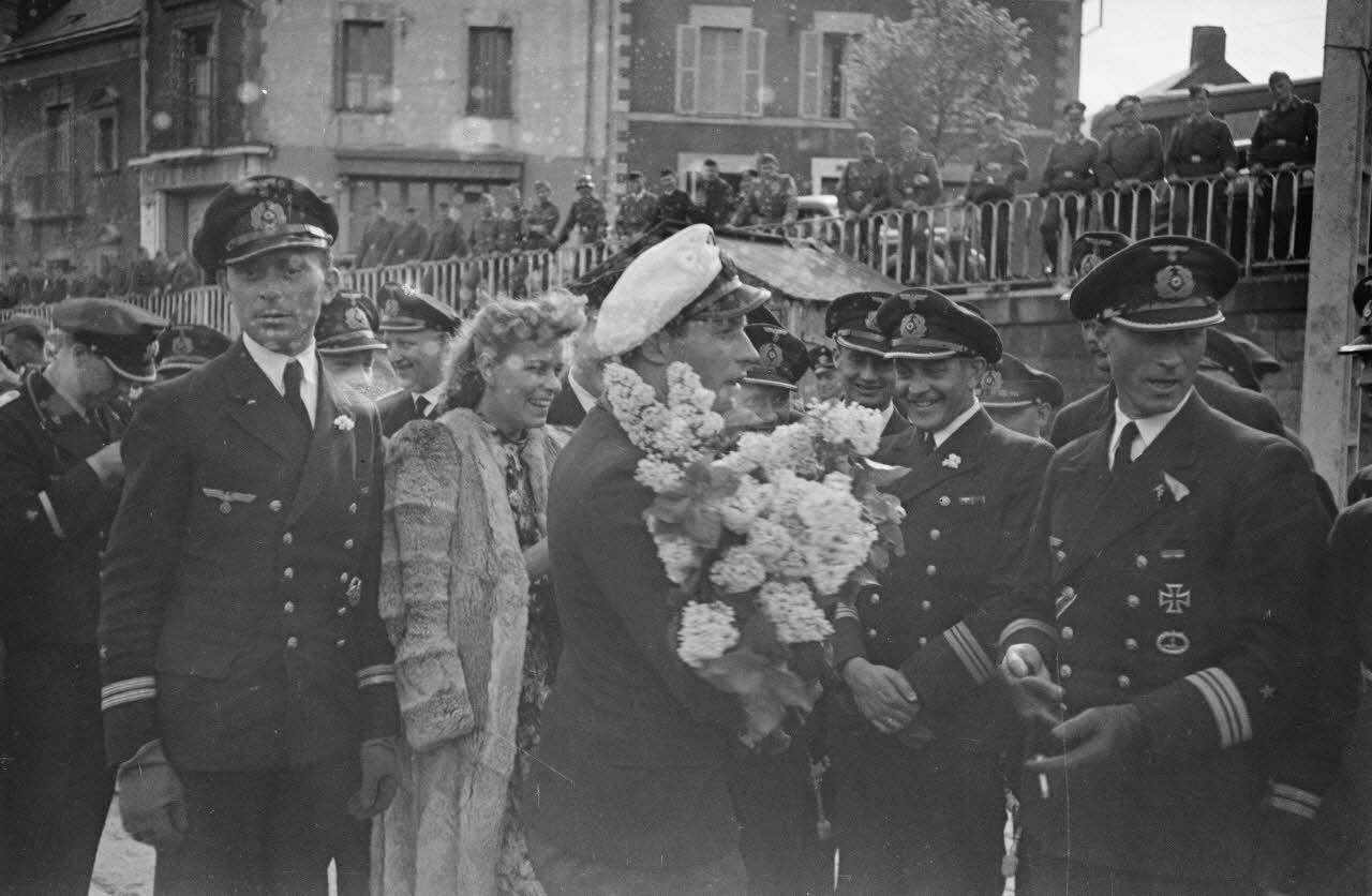 A Saint-Nazaire, lors de l'appareillage du sous-marin U-97 de Udo Heilmann, des personnalités viennent lui apporter son soutien.