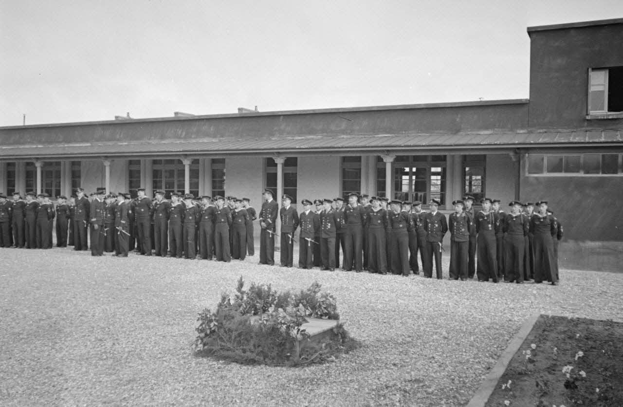 Lors d'une cérémonie de la Kriegsmarine à Saint-Nazaire, des sous-officiers au garde-à-vous à l'arrivée des autorités.