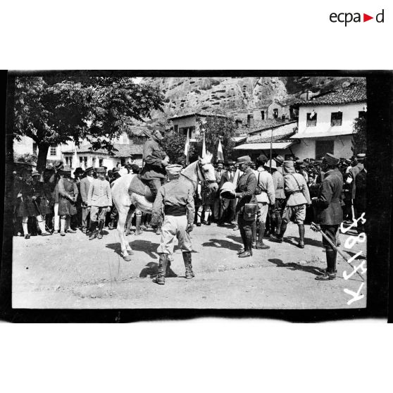 Kastraki (Thessalie). Le général Sarrail monte à cheval pour se rendre au couvent des Météores.