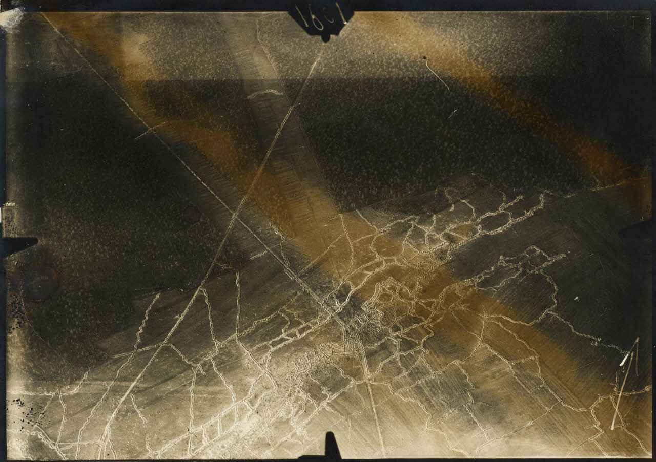 Photographie aérienne numéro 1601. S Mort Mare. La Patte d’Oie. 15 octobre 1915. [légende d'origine]