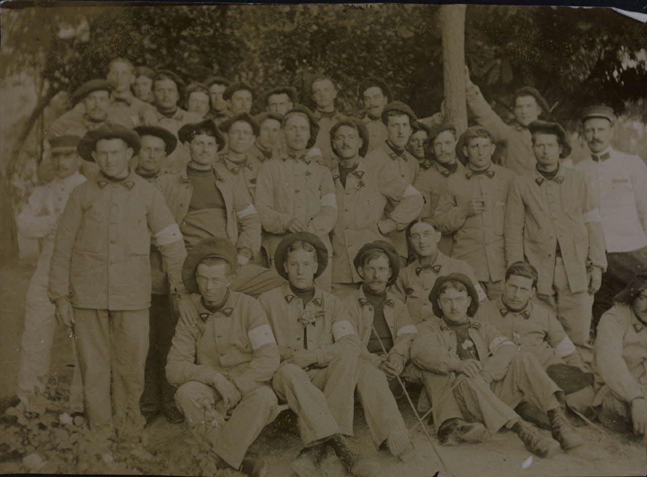 Les archives photographiques du médecin major Augarde (1869-1943), affecté au 138e régiment d''infanterie, sont caractéristiques de la production d''images fixes militaires pendant la Grande Guerre : portraits de militaires, pièces d''artillerie et mitrailleuses avec leurs servants, villages en ruine suite aux bombardements ennemis, abris de fortune aménagés dans des tranchées, etc. Les photographies cotées en D0349-005 étaient conditionnées dans une enveloppe intitulée « Divers ».