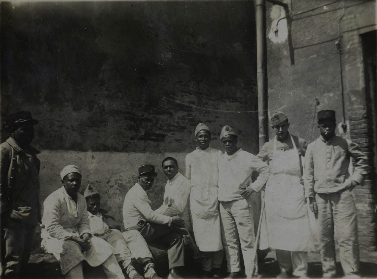[Photographie de groupe de militaires parmi lesquels figurent des tirailleurs sénégalais].