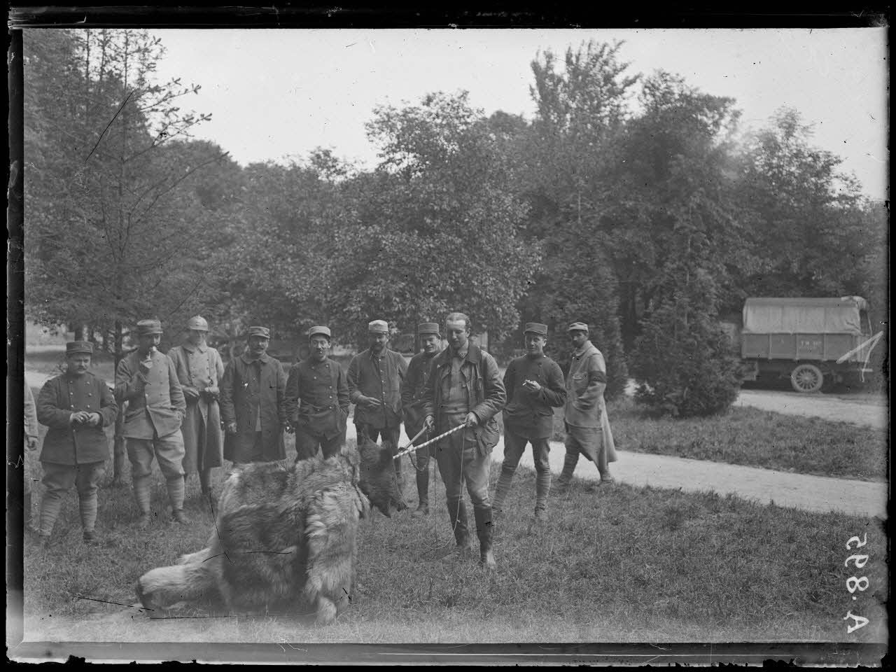 Piennes. Somme. Divertissement au cantonnement. Le montreur d'ours.