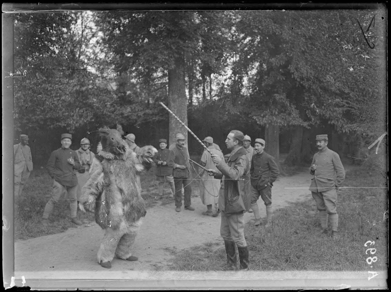 Piennes. Somme. Divertissement au cantonnement. Le montreur d'ours.