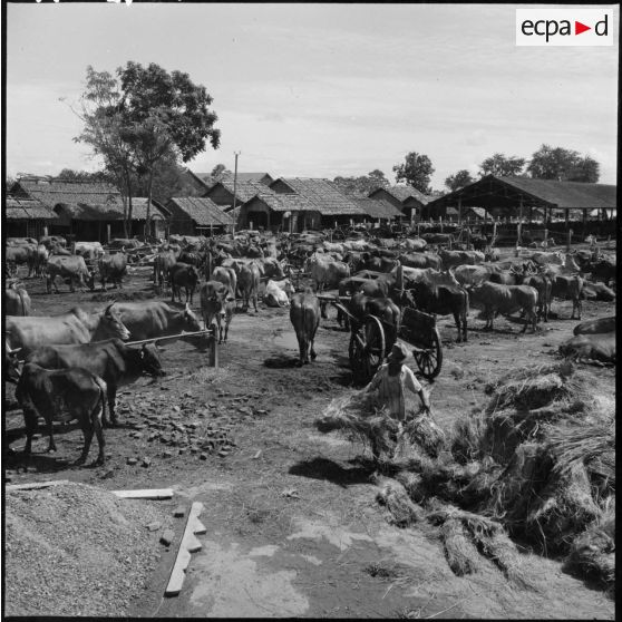Parc à boeufs dans les environs de Phnom Penh.
